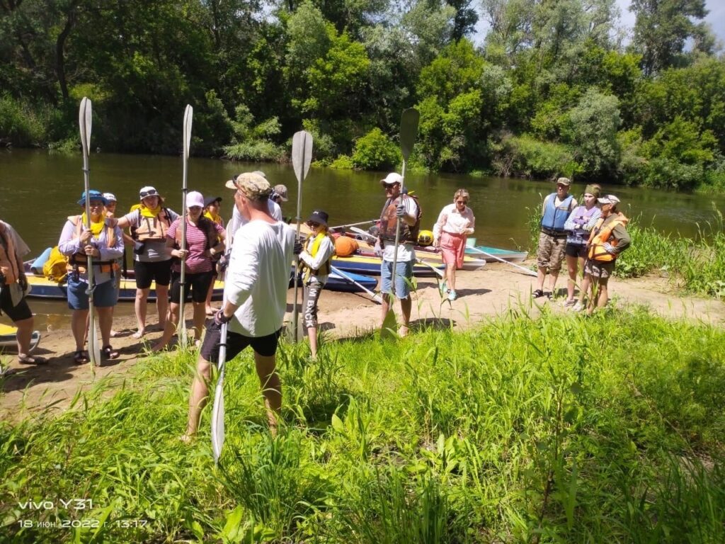В начале похода участники посетили храм Рождества Христова в селе Нижняя Добринка. Настоятель прихода священник Кирилл Коннов рассказал им об истории храма, а затем юные прихожане поднялись на колокольню. Байдарочный сплав начался от поселка Мельзавод — здесь детям провели инструктаж по технике безопасности, они получили снаряжение и отправились в путь на девяти байдарках.