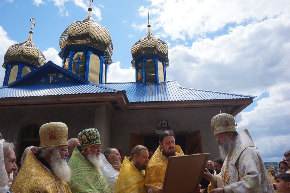 По окончании богослужения и крестного хода вокруг храма архипастырь поблагодарил настоятеля и прихожан за то, что они, несмотря на сопротивление раскольников, проявили стойкость в вере, верность канонической Украинской Православной Церкви и за два года возвели в родном селе новый храм. Верующим, внесшим значительный вклад в строительство, архиерей вручил благословенные грамоты и церковные ордена. Общине передана благодарственная архиерейская грамота за труды во славу Православной Церкви для ее размещения в храме, сообщает пресс-служба Черновицко-Буковинской епархии.