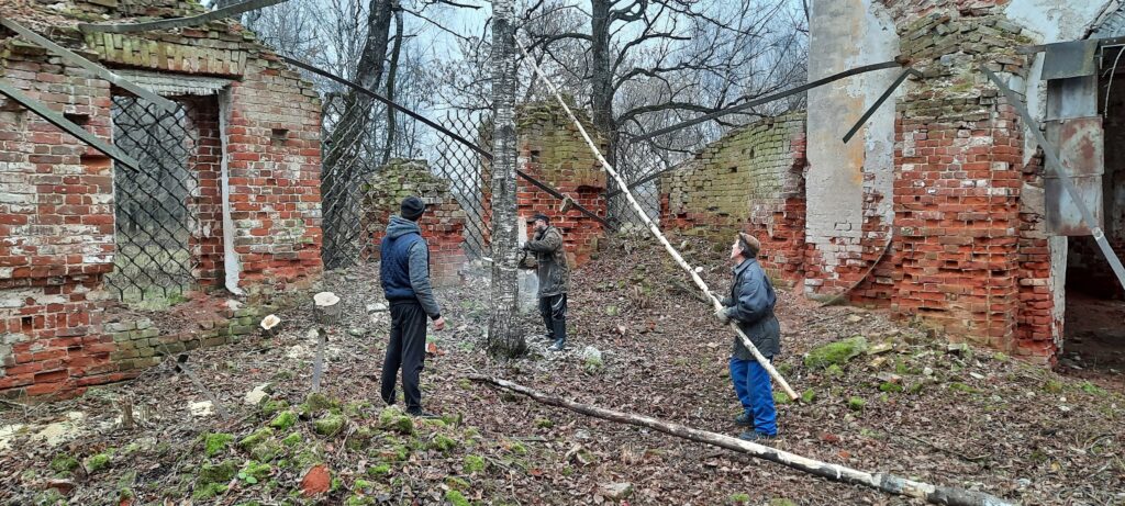 В рамках поездки руинированный храм очистили от зарослей. Волонтеры организовали вырубку нескольких больших деревьев в трапезной и алтарной части церкви, для чего потребовалось привлечь специалистов и увеличить до трех дней добровольческий выезд. В уборке храма также приняли участие местные жители.
