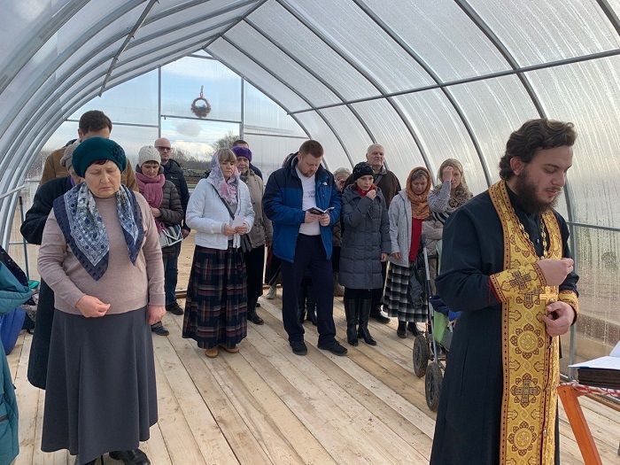 Община строящегося храма во имя святителя Спиридона Тримифунтского в Вологде каждое воскресенье собирается на молебен. Летом богослужение проходило на улице, а с наступлением холодов на территории оборудовали большую теплицу. А потом СМИ облетела новость, что в теплице совершают литургии, крестят и венчают.