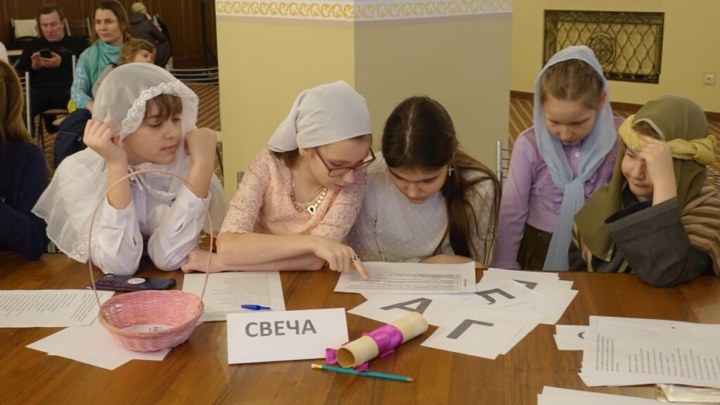 Встречу посвятили престольному празднику. Юные прихожане отгадывали загадки, собирали слова из отдельных букв, участвовали в эстафетах, проверяя свои знания основных православных праздников и житий святых.
