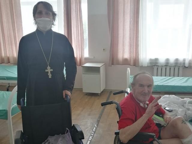 11 июня 2020 года волонтеры Никольского собора Черкесска приобрели и передали инвалидную коляску пострадавшему от пожара мужчине.