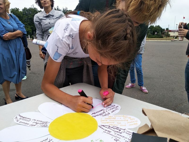 Каждому прохожему сестры вручали буклет с информацией о грехе аборта и предлагали написать на бумажной ромашке добрые пожелания будущему поколению, сообщает сайт Слуцкой епархии. Ромашку потом отпустили в небо на воздушных шарах.