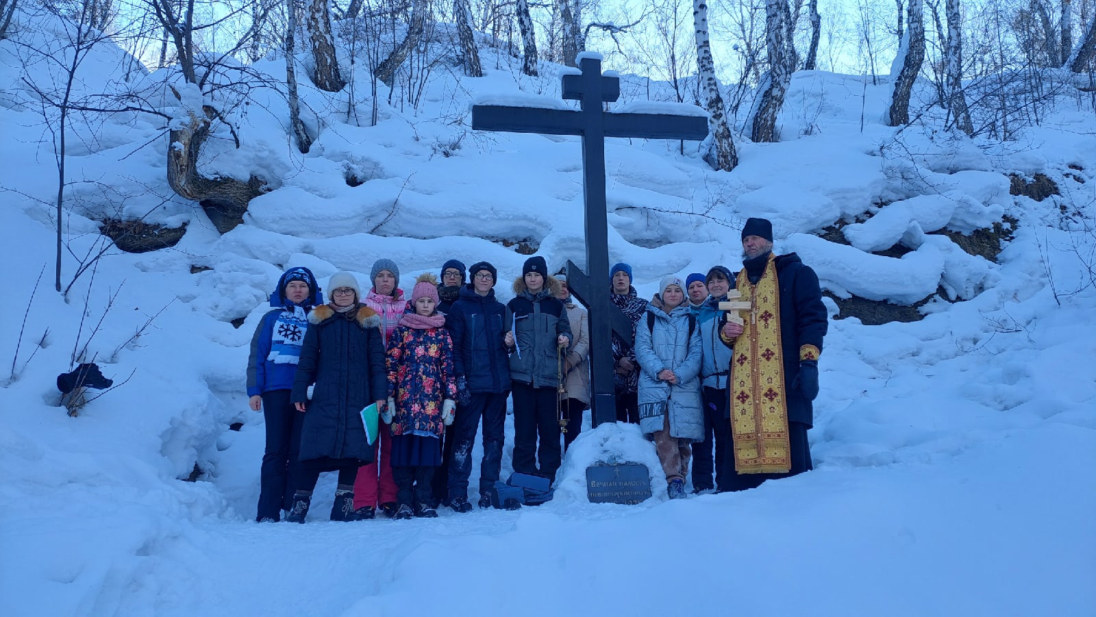 Молодых прихожан сопровождал клирик собора иеромонах Исаия (Астапчук), сообщает сайт Новосибирской митрополии. Вместе с участниками похода он совершил у поклонного креста литию по усопшим и молебен Новомученикам и исповедникам Церкви Русской.