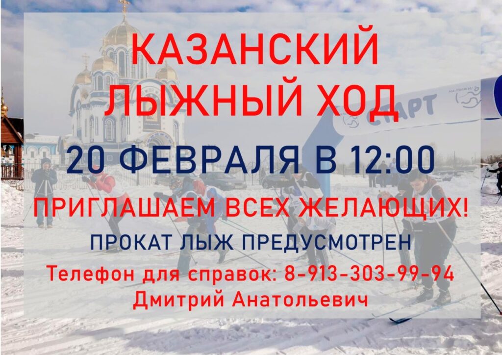 Приходы.ру. 16.02.2022. В следующее воскресенье в Кемерове состоится ставший традиционным Казанский лыжный ход. Его маршрут пройдет от храма в честь Казанской иконы Божией Матери до источника, затем — в обратном направлении. Стартует ход в полдень.