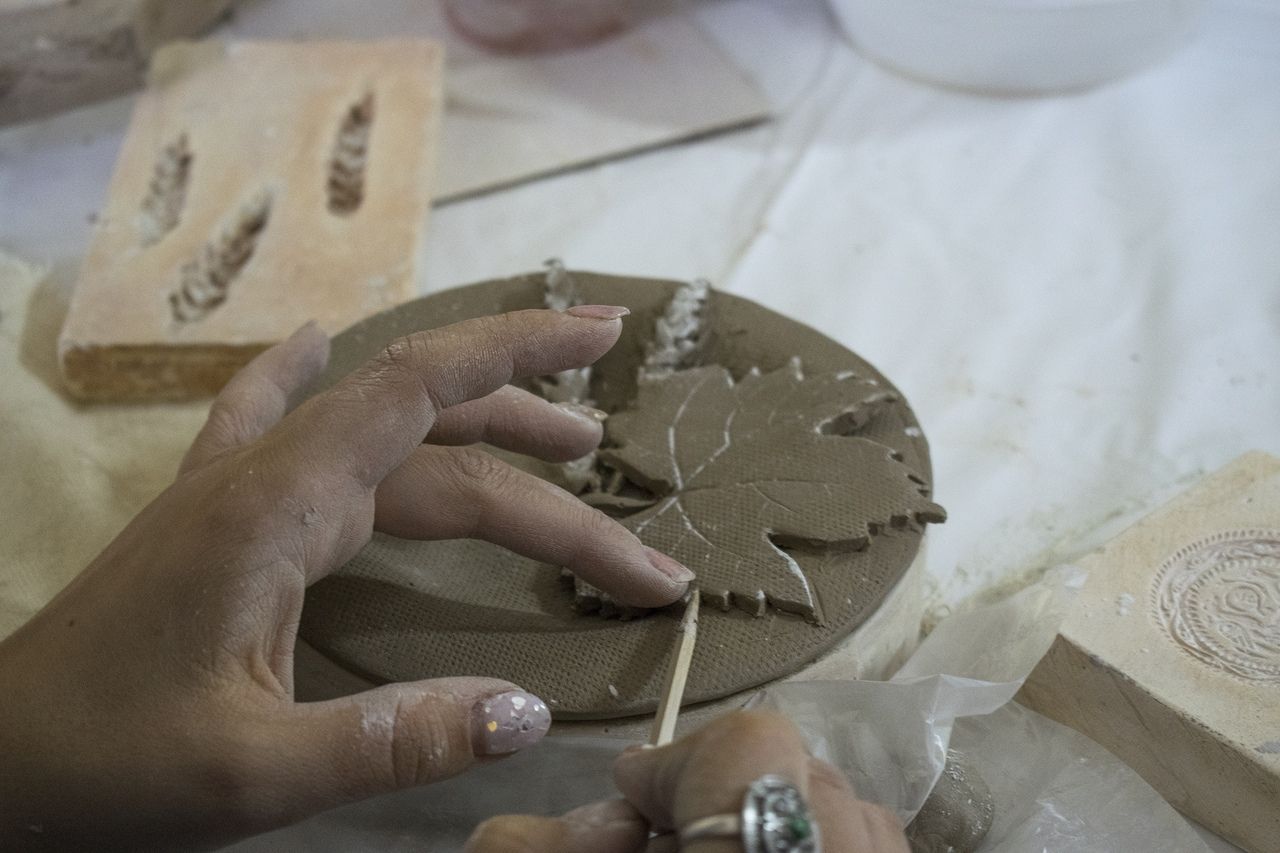 Занятие было посвящено изучению разных видов глин, из которых изготавливались изразцы в прошлом. Участники мастер-класса познакомились с техникой работы с глиной и научились создавать декоративные элементы при помощи отминки гипсовых форм.