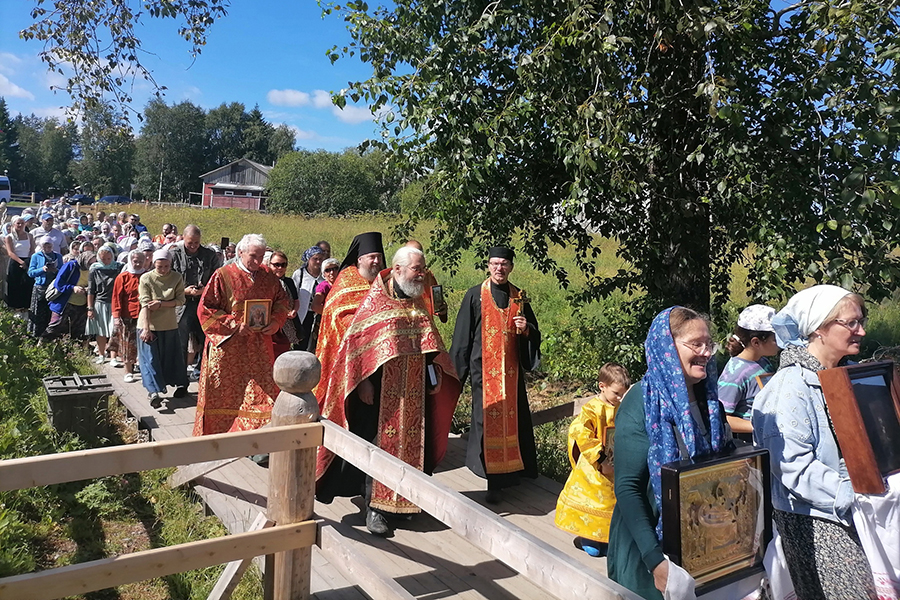Участники передвигались на личных автомобилях и на транспорте группы компаний «Автодороги», сообщает епархиальный сайт. Первую остановку совершили у храма в честь иконы Божией Матери «Взыскание погибших» в Жаровихе, затем молились у поклонных крестов в Уемском и Черном Яру, у дачного кооператива «Северодвинка». Везде совершались заупокойные литии. Также был совершен молебен в музее под открытым небом «Малые Корелы». Завершился крестный ход около Успенской церкви в деревне Новинки.