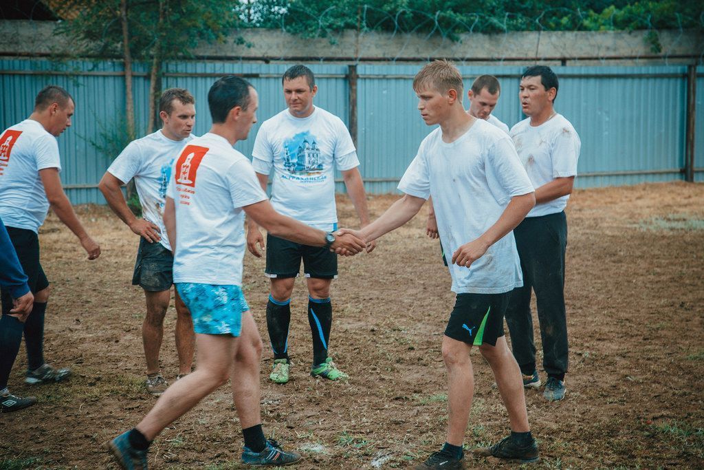 Участники молодежного движения храма святого апостола Андрея Первозванного и Покровского собора города Астрахани посетили исправительную колонию №10 и сыграли с заключенными в футбол.