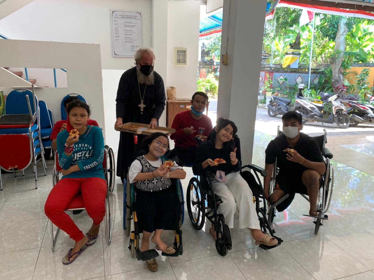 Приходы.ру. 24.08.2021. 17 августа игумен Павел (Хохлов) вместе с прихожанами храма преподобного Сергия Радонежского на острове Бали посетили приют для детей с заболеваниями опорно-двигательного аппарата. Члены христианской общины приезжают в гости по вторникам, когда это позволяет эпидемиологическая обстановка.