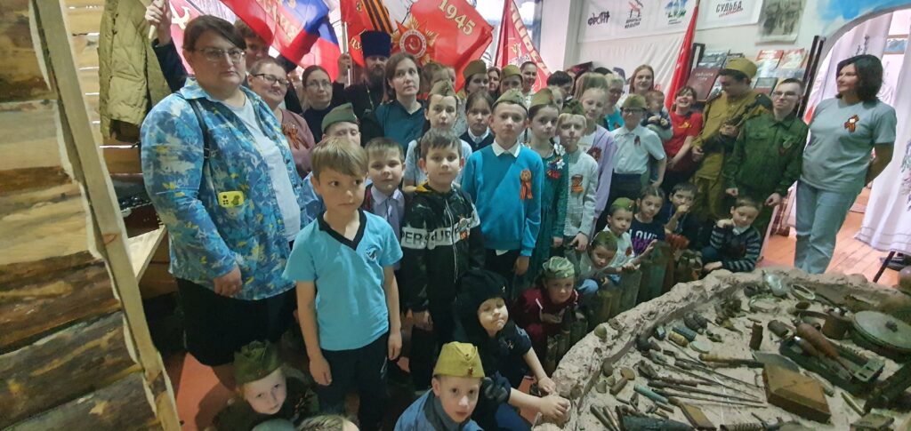 Приходы.ру 10.05.2023. 8 мая духовенство Успенского храма в Бугуруслане Оренбургской области, ученики и преподаватели воскресной школы “Горлица” посетили музей личных вещей и снаряжений советских солдат, созданного объединением поисковой группы “Бугуруслан”.