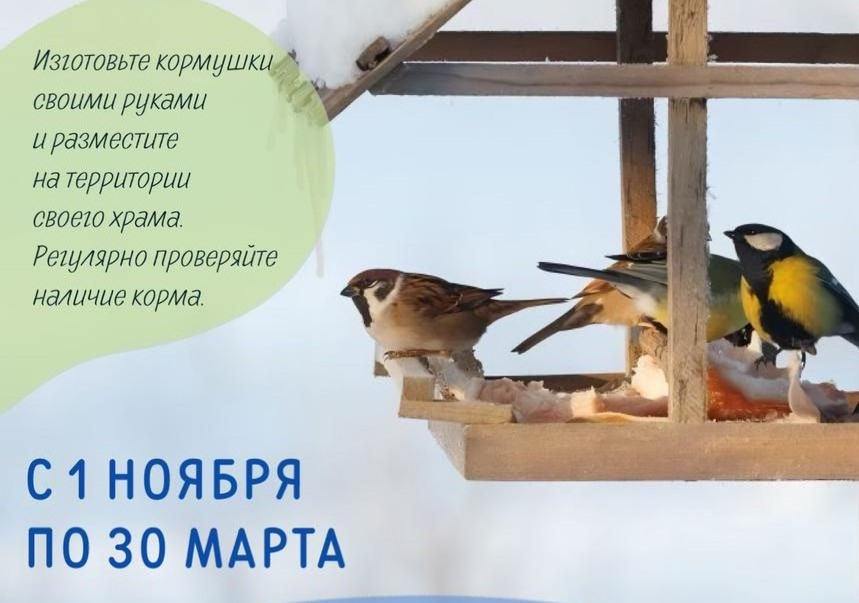 Для этого требуется вместе создать эко-кормушки для птиц и разместить их на прихрамовой территории, а затем вплоть до 30 марта следующего года – окончания акции – пополнять запасы корма. Некоторые приходы также «берут под опеку» территории парков.