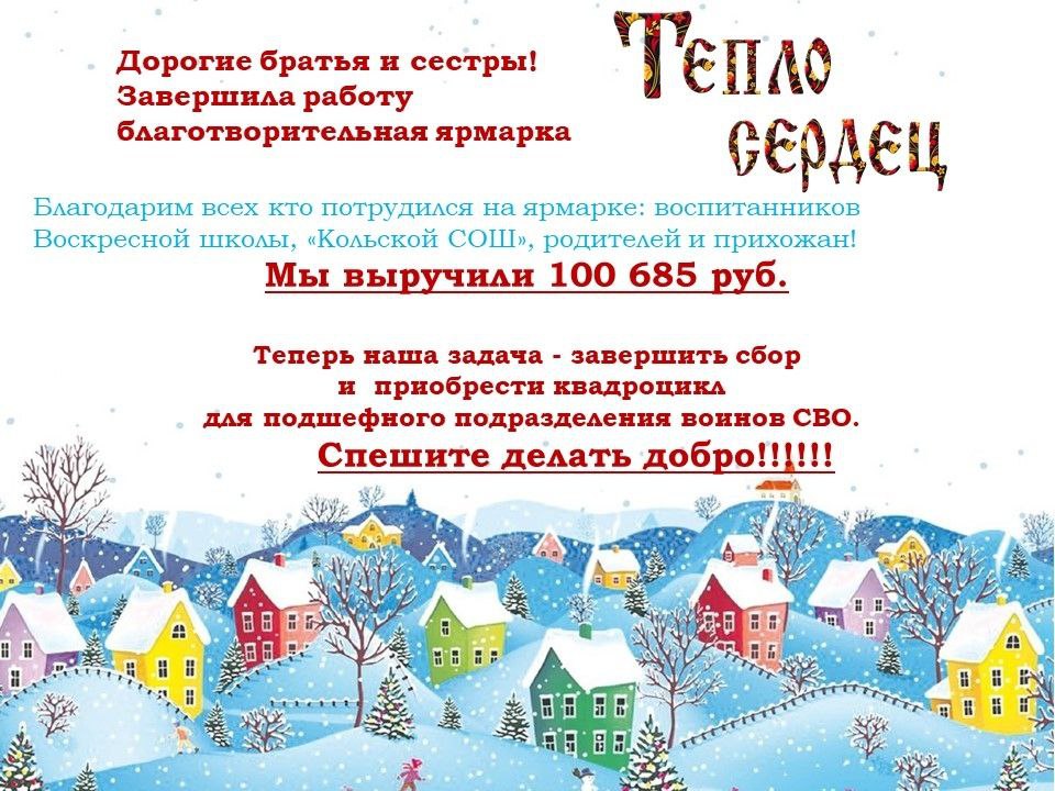 Приходы.ру 26.01.2026. В дни Святок в Благовещенском соборе города Колы (Мурманская епархия) прошла традиционная благотворительная ярмарка «Тепло сердец». В подготовке к ней приняли участие как взрослые прихожане, так и ученики воскресной школы, а также ребята из местной средней школы.