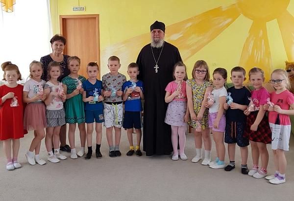Настоятель сельского прихода давно установил доброжелательные отношения с ближайшими детскими садами. Он посещает воспитанников, общается с педагогами, поздравляет малышей и взрослых с православными праздниками. С детьми из старших групп священник обсуждает доступные для их понимания темы и отвечает на вопросы о вере и духовной жизни.