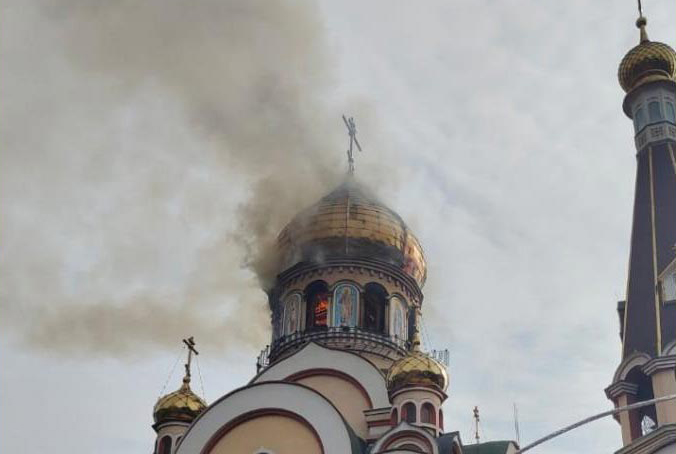Приходы.ру. 07.10.2021. 5 октября произошел пожар в храме в честь Воздвижения Креста Господня в Алма-Ате. Огненная стихия полностью уничтожила центральный купол, главный алтарь, иконостас и внутреннее убранство. Престол остался неповрежденным.
