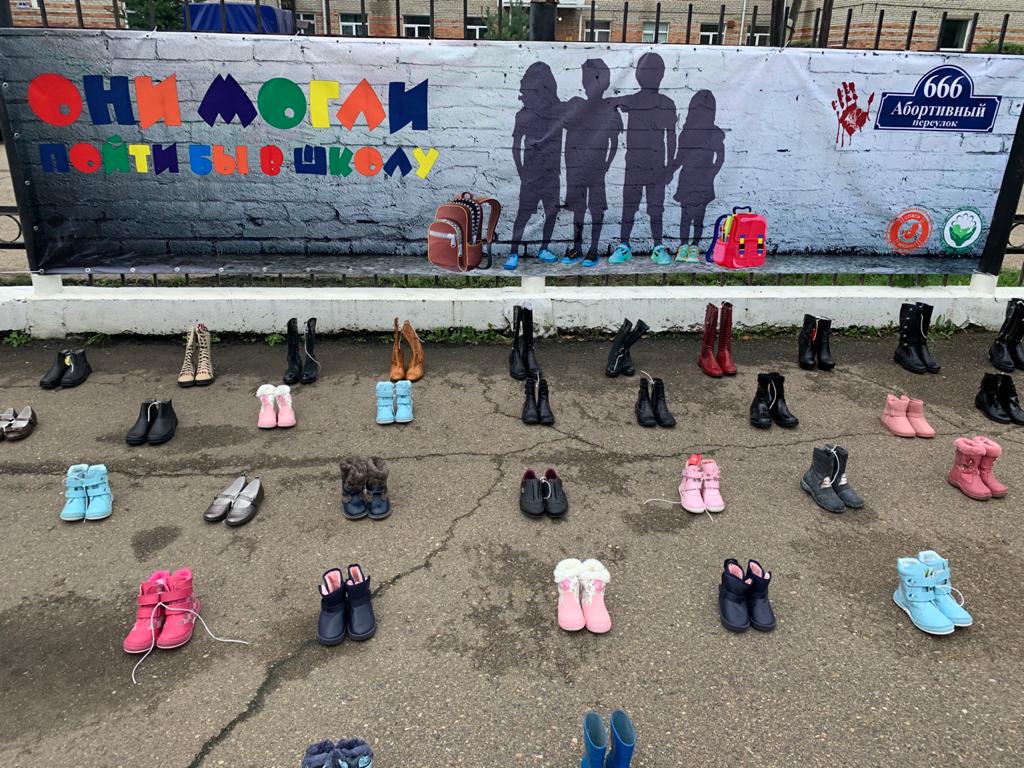 На ограде храма вывесили плакат с названием «Они могли бы пойти в школу». Рядом на асфальте расположили 107 пар детской обуви — по числу совершаемых за год абортов в Октябрьском районе. После акции обувь раздали нуждающимся детям, сообщает сайт Владивостокской епархии.