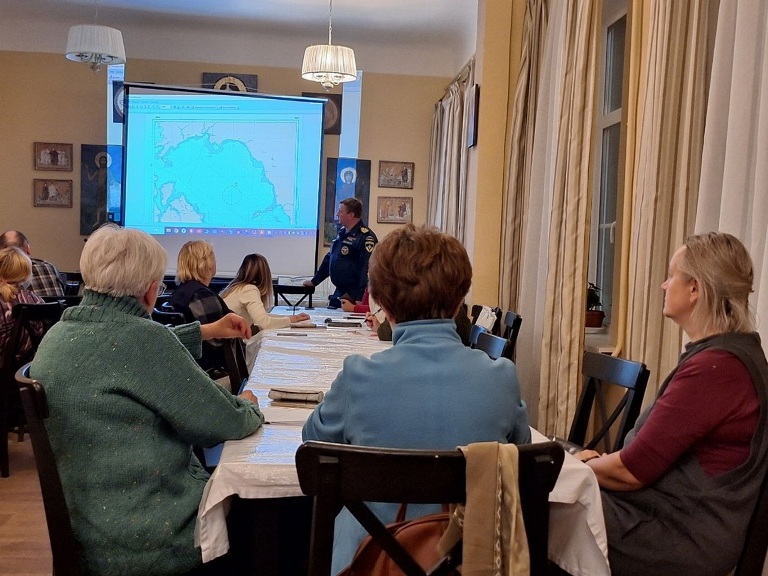Приходы.ру 30.10.2024. 28 октября 2024 года в большом зале трапезной храма святого Александра Невского города Пскова состоялась лекция для экскурсоводов и тех, кто интересуется историей родного края, на тему: «О состоянии Псково-Чудского водоёма». Лектором выступил начальник отдела безопасности людей на водных объектах Центра государственной инспекции по маломерным судам Главного управления МЧС России по Псковской области Юрий Покатов.