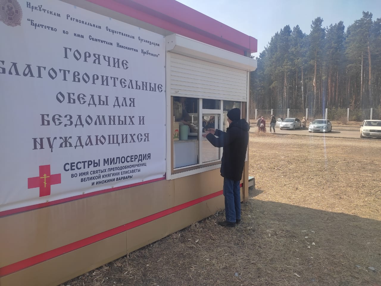 Идея создания пункта по раздаче благотворительных обедов в ангарском соборе возникла в 2020 году, но не было понимания, как организовать процесс. Недавно местный предприниматель помог общине с приобретением строительного вагончика, который установили на территории прихода. Пока его площади хватает для раздачи еды нуждающимся.
