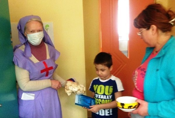 Мамы маленьких пациентов онкогематологического отделения с благодарностью приняли книги в подарок, а затем задали вопросы о Боге, о православной вере, Таинствах Церкви и многом другом. Сестры внимательно выслушали их, побеседовали с собравшимися и порекомендовали литературу, в которой можно найти исчерпывающие ответы на поставленные вопросы.