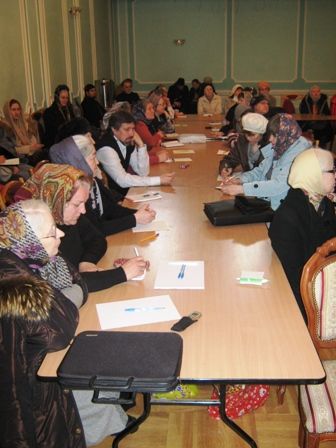 Семинар вела православный психолог Лилия Андреева. Ею были рассмотрены такие темы, как правила поведения с впервые пришедшими в храм людьми, трудности, возникающие в общении с ними. Кроме того, на занятии обсуждался вопрос, каким должен быть внешний облик и стиль поведения работниц церковных лавок.