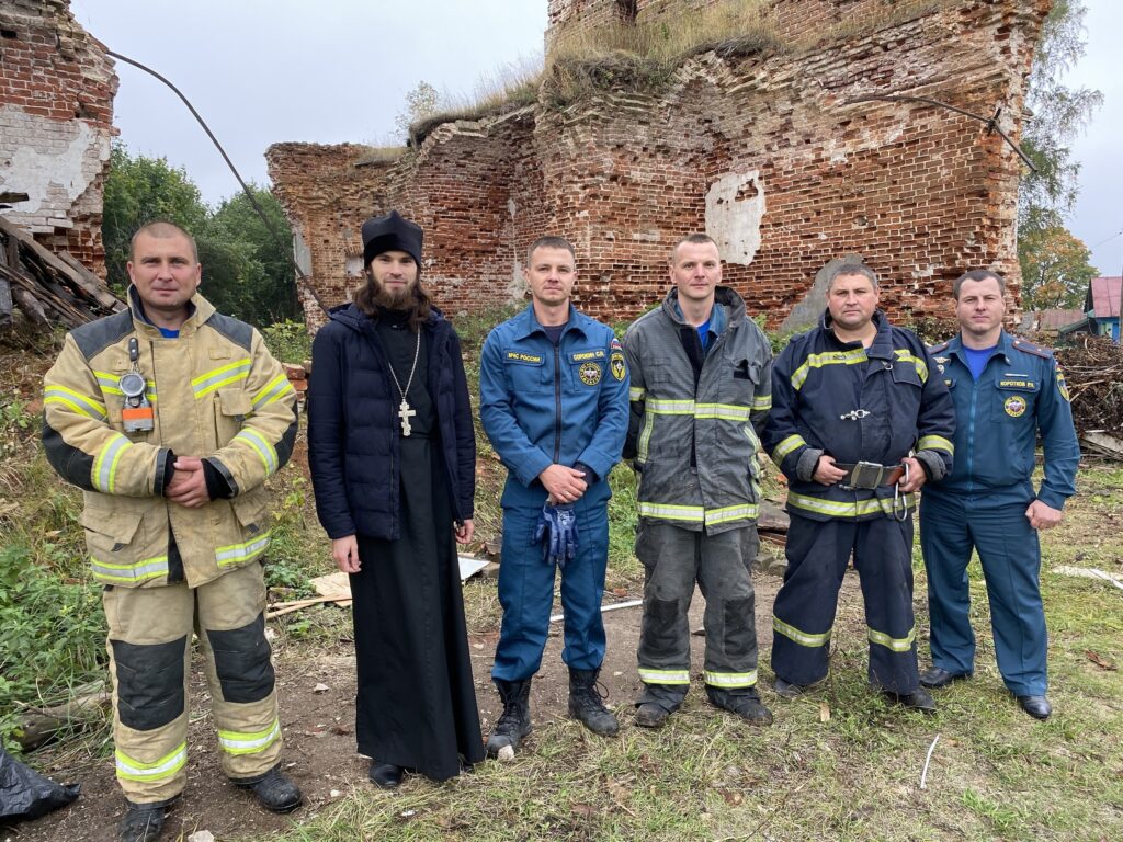 Приходы.ру 23.09.2022. Вчера сотрудники 122 пожарной части рабочего поселка Вача Нижегородской области помогли приходской общине храма Троицы Живоначальной села Яковцево очистить от мусора территорию разрушенной трапезной части храма. Ее планируют начать восстанавливать в ближайшее время.