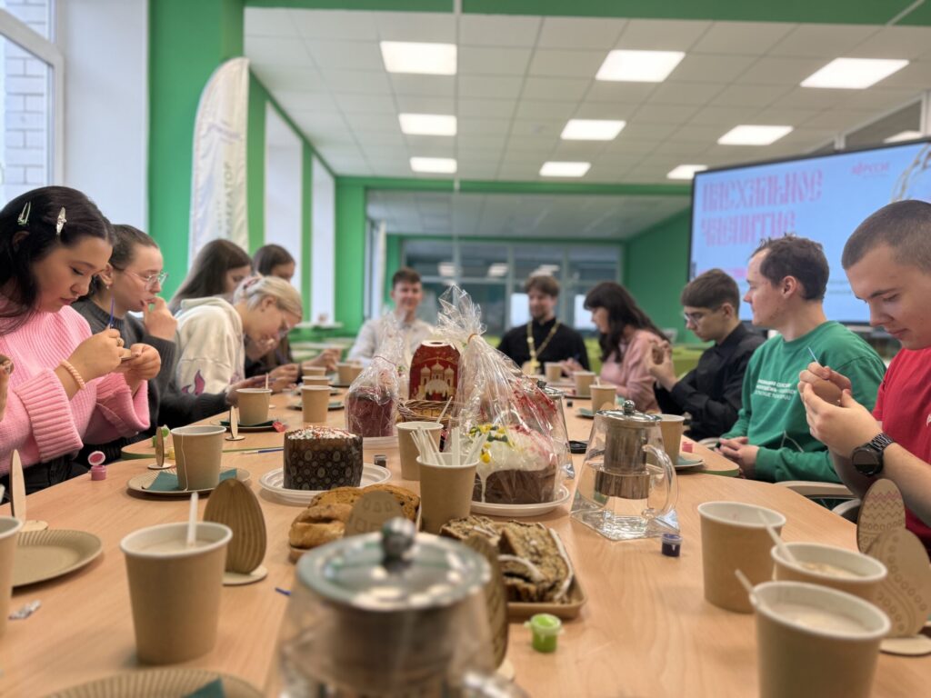 Приходы.ру 17.04.2026. «Пасхальное чаепитие» прошло 14 апреля, в Светлый вторник, в Научной библиотеке Елецкого государственного университета имени И.А. Бунина. На встречу со студентами пришел помощник руководителя епархиального отдела по пастырской работе с молодёжью иерей Александр Максимов, сообщает сайт Елецкой епархии.