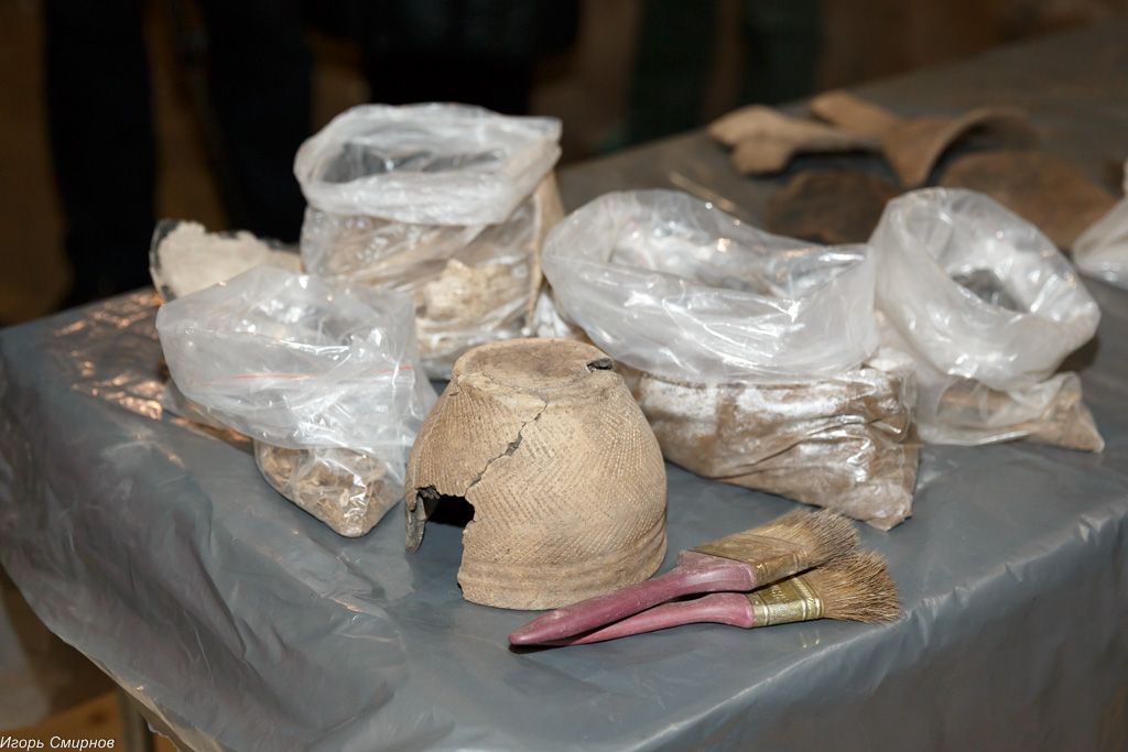 – В детском погребении лежали кости ребенка, в изголовье стоял глиняный сосуд; мы нашли бронзовые бляшки, скорее всего, нашивки на одежде, – рассказывает Максим Грачев. – Второе погребение отличалось от первого – тело умершего было кремировано. Я думаю, что на этом месте когда-то было кладбище, и это не единственное погребение.