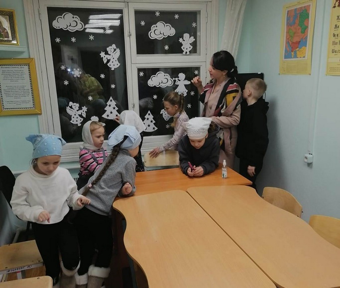 «Теперь с окон воскресной школы ангелы с нетерпением ждут Рождества Богомладенца и всех нас зовут разделить эту радость», — говорят педагоги.