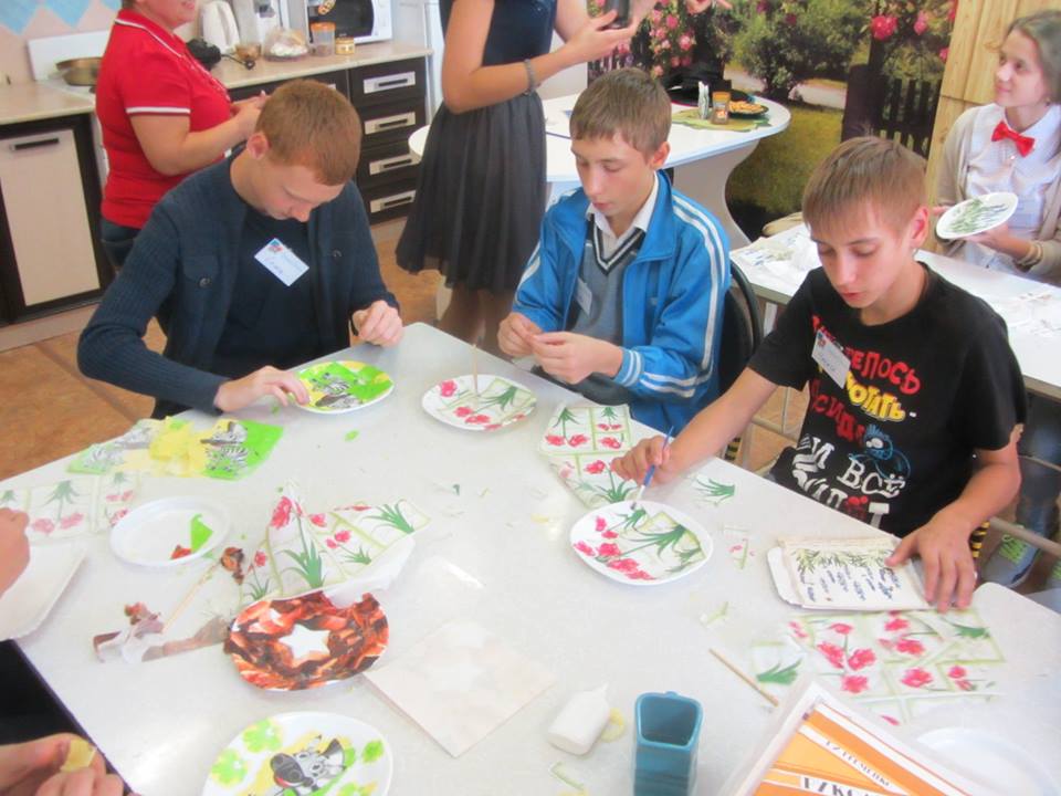 В новом учебном году в волгоградской школе-интернате № 6 возобновилась серия творческих мастер-классов рукодельниц Православного семейного центра «Лествица» при сотрудничестве с благотворительным фондом «ДетскиеДомики». 19 сентября педагог Центра обучал ребят технике «декупаж» – это занятие заинтересовало и мальчишек, и девчонок.
