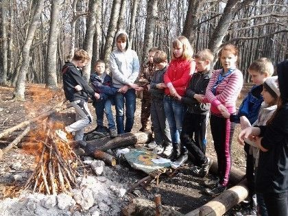 Первая задача – сбор дров и разжигание костра, а также уборка поляны от мусора. Когда отряд собрался у огня, ребята обсудили вопрос, что делать, если заблудился в лесу. После беседы устроили эстафету, а затем все принялись за обед. Вкусно поели – пора получить новую порцию знаний. Главной темой сбора стал праздник Сретения Господня. Вспомнили забытое, узнали новое. После этого наступило время подвижных игр.