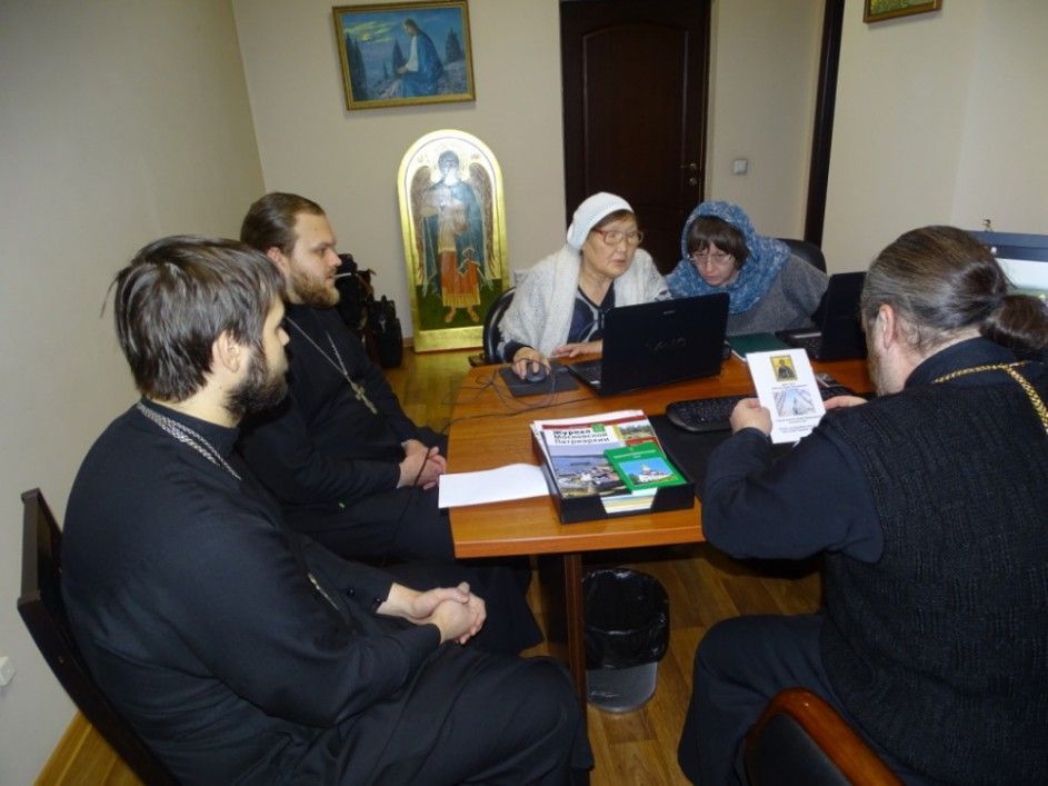 В этот день в кабинете настоятеля Георгиевского храма прошла встреча, связанная с переводом православных молитв на хантыйский язык. Перевод осуществляется носительницей языка Феоктистой Смирновой и заместителем директора по научной работе Русскинского музея природы и человека Ольгой Звоновой. Работа финансируется из средств гранта, который получил настоятель храма апостола Андрея Первозванного иерей Димитрий Галицкий, сообщает сайт Ханты-Мансийской митрополии.