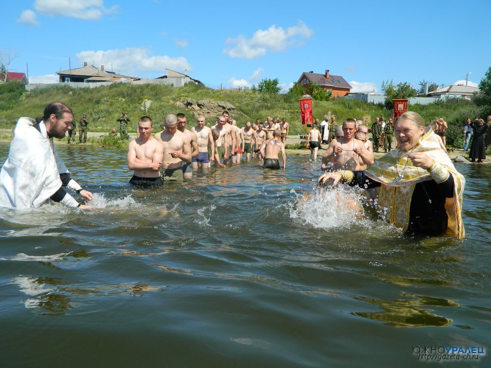 20 июля в водах озера Чебаркуль приняли крещение около ста военнослужащих, сообщает газета «Южноуралец».