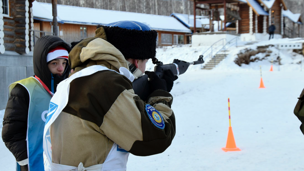 Участники попробовали свои силы в лазерном биатлоне с преодолением полосы препятствий и стрельбой по мишеням из лазерных винтовок.