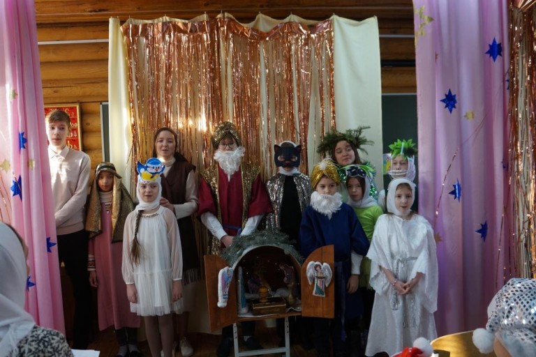 В ходе праздника всем ребятам вручили подарки. По окончании концерта дети собрались на улице у Рождественского вертепа, чтобы славить Христа колядками.