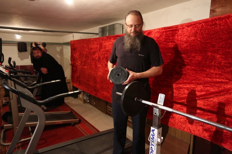 Несколько раз в неделю настоятель собора игумен Тихон (Тюрюмин), как другие священнослужители, меняет подрясник на спортивное трико. В зале их ждут тренировки, например, по боксу ­­- лоу-кик у отца Тихона выходит все лучше, а десять подходов по десять отжиманий на брусьях для иеродиакона Филарета (Каширского) ­- не проблема. Впрочем, он именует себя любителем: тренажерный зал для него наравне с велосипедом и роликовыми коньками — это хобби и способ работать над собой. «В здоровом теле – здоровый дух», — вспоминают батюшки расхожее выражение.