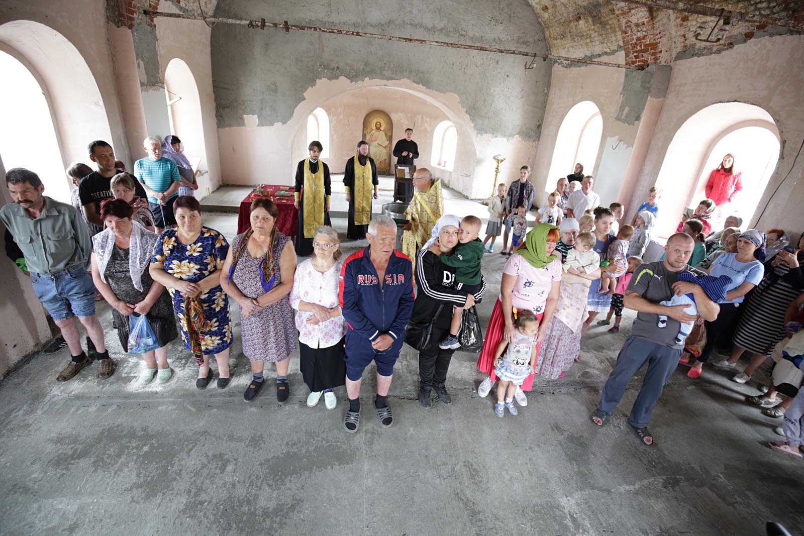 Многие селяне пришли креститься всей семьей. Среди них — Дмитрий и Лилия Шибаевы с тремя детьми. Дмитрий одним из первых стал помогать на субботниках в храме, когда началась подготовка к его реставрации, а теперь привел сюда жену и детей. «Мы давно мечтали об этом, а тут такой момент хороший, и мы решили покреститься всей семьей», — поделилась его супруга.
