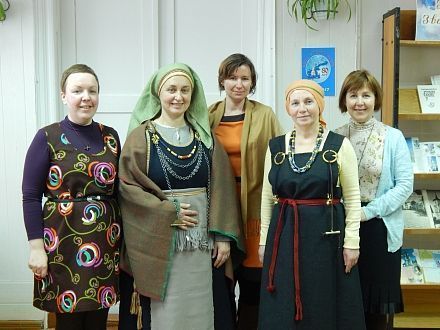 Для этого из Петрозаводска приехала специалист по карельскому костюму, участница клуба исторической реконструкции «Скёль» Наталья Денисова. Гостья рассказала о женской одежде финно-угорских племен, уделив особое внимание ее практичности и универсальности, а также подробно рассмотрев каждую деталь костюма. Ведущая мастер-класса продемонстрировала, как носили различные элементы одежды женщины-карелки.