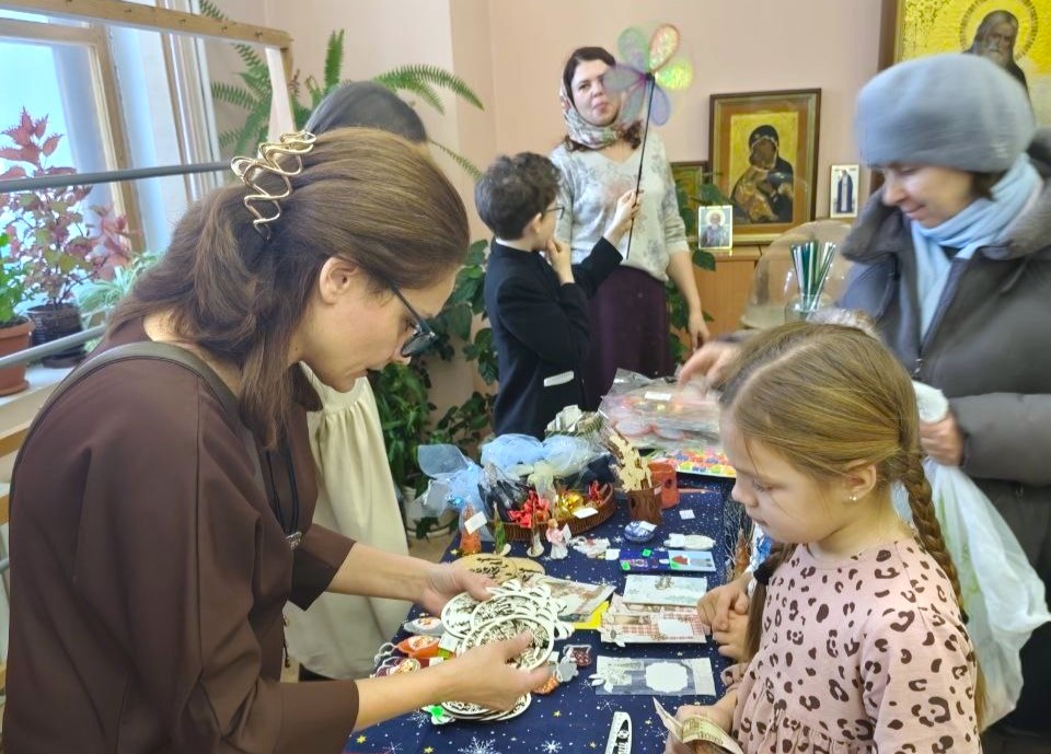 Воспитанники, родители и педагоги воскресной школы подготовили подарки и сувениры к празднику: ёлочные игрушки ручной работы, открытки, рождественские венки и многое другое. Прихожане собора принесли домашнюю выпечку.