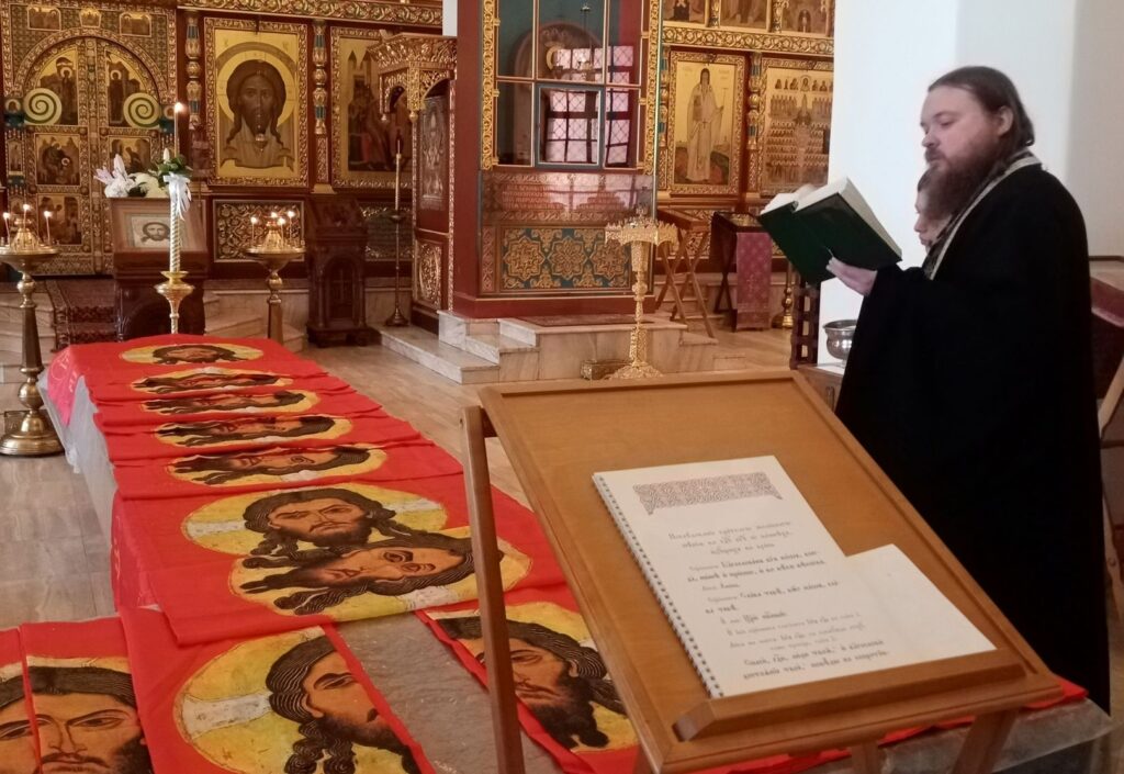 Приходы.ру 05.04.2023. В начале текущей недели в храме во имя святителя Николая Чудотворца в Ямской слободе г. Рязани освятили стяги и шевроны с изображением Спаса Нерукотворного. Чин освящения совершил ключарь церкви священник Димитрий Фетисов.