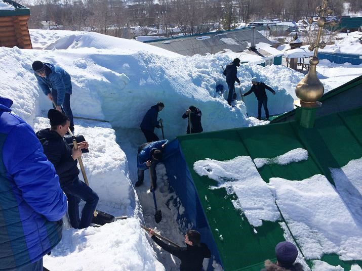 День и ночь по очереди снег кидали все: и настоятель иерей Андрей Пелипенко, и пономари, и прихожане. На помощь им в борьбе со снежной стихией, которая взяла в плен православный храм, пришли руководство и студенты Медногорского индустриального колледжа, которые также взяли в руки лопаты и помогли разгребать сугробы.