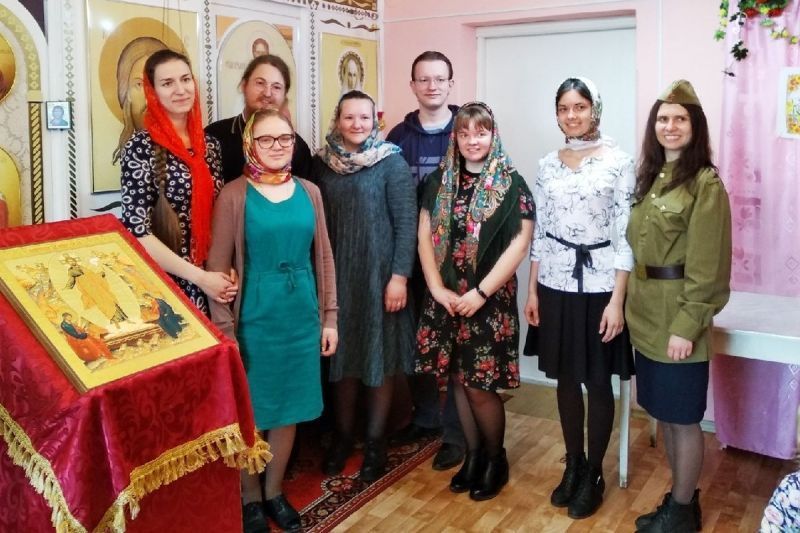 Активисты волонтерского движения «Благо» при Архангельском отделении Всемирного русского народного собора совместно с женами городских священников посетили Маймаксанский психоневрологический интернат. Юноши, девушки и женщины исполнили песни о Великой Победе — «Катюшу», «День Победы» и другие.