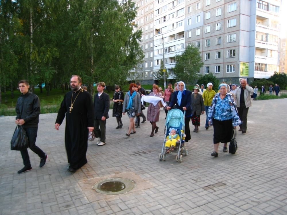 Об акции, организованной приходским советом, настоятель храма протоиерей Василий Мовчанюк объявил по завершении всенощного бдения с чином погребения Божией Матери. Все присутствовавшие на службе отправились на центральный проспект микрорайона Пионерный, где каждый желающий смог зажечь приготовленные свечи и, поставив на специально отмеченные места, составить слова «Богородице Дево, радуйся».