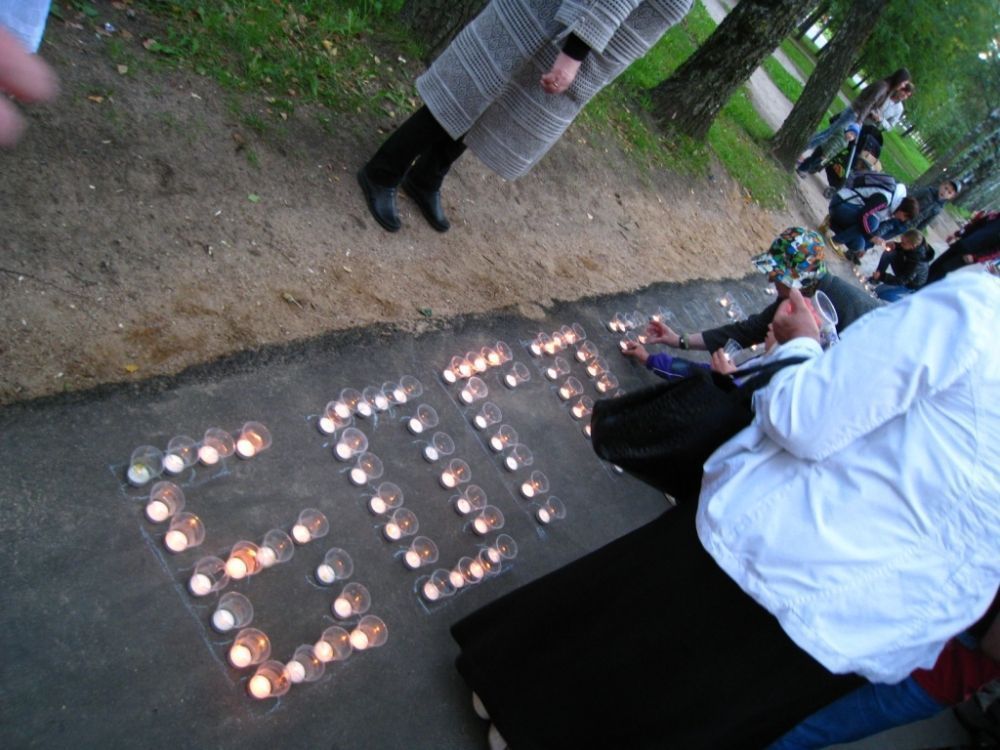 Через некоторое время основная масса людей разошлась, а гимн Пресвятой Богородице, выложенный огоньками свечей, продолжал привлекать внимание прохожих, которые, глядя на слова, задумывались и делали фотографии на память.