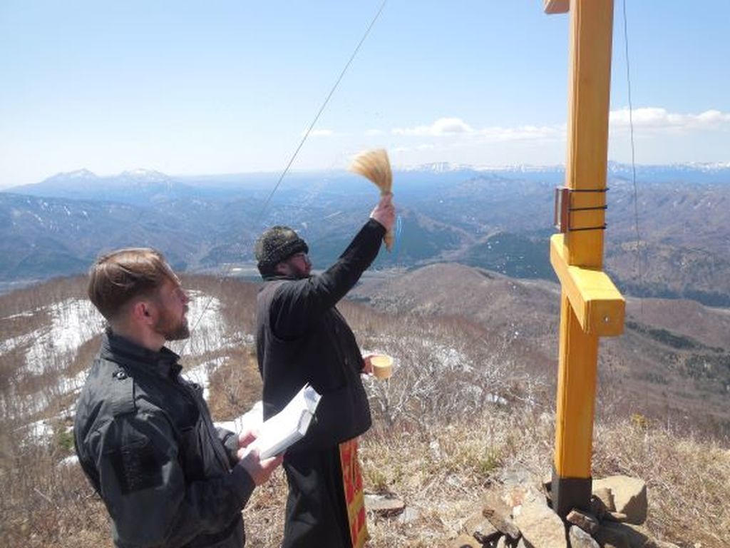 В освящении приняли участие настоятель макаровского храма Донской иконы Божией Матери иеромонах Димитрий (Луговской), прихожанин храма Николай Морозов и пономарь южно-сахалинского храма во имя блаженной Ксении Петербургской Валентин Соколов. Для этого они совершили восхождение на гору, которое заняло полдня. «Поскольку река Макарова в половодье представляет собой серьезное препятствие, поход проходил через соседнюю гору Сияния. Несмотря на близость лета, лес стоит ещё без листвы, местами лежат мощные пласты снега. Дальние горы сплошь покрыты снегом», — говорится в сообщении на епархиальном сайте. Наверху священник совершил чин освящения креста, к которому прикрепили икону Спасителя.