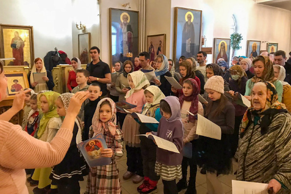Приходы.ру. 16.02.2022. С начала февраля в храме святых мучениц Веры, Надежды, Любови и матери их Софии города Казани прихожане и ученики воскресной школы поют на воскресных литургиях вместе с хором. Участникам богослужения раздают книги с чинопоследованием литургии, так что присоединиться к соборной молитве и совместному пению могут все, кто пришел на службу.