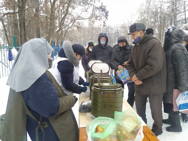 Приходы.ру. 11.02.2022. В Ульяновске проходит регулярная раздача горячих обедов социально незащищенным гражданам, попавшим в трудную жизненную ситуацию. По понедельникам, средам и пятницам они могут поесть на территории храма в честь иконы Божией Матери «Неупиваемая Чаша», по вторникам и четвергам — во имя великомученика Георгия Победоносца. По субботам кормление на одном из перекрестков в Новом городе организовывает Никольский приход.