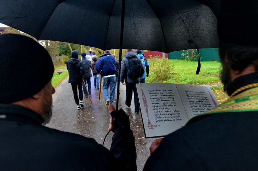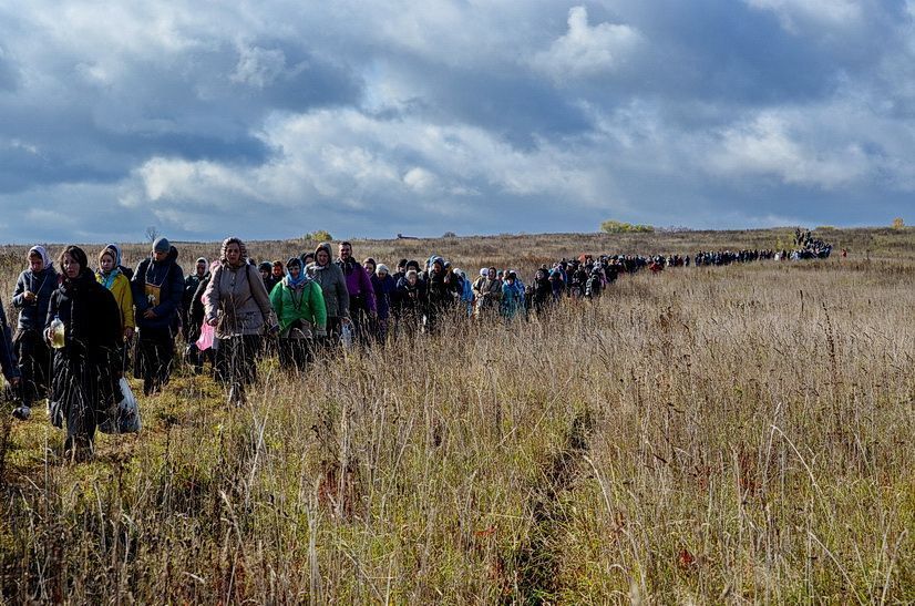 Первая группа крестоходцев вышла из села Воздвиженское, где останавливались богомольцы после двух дней пешего пути из Москвы в лавру.