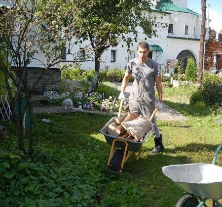 После литургии и молебна добровольцы расчищали территорию обители от металлолома, занимались земляными работами по реконструкции погреба и заготавливали дрова для нужд монастыря.