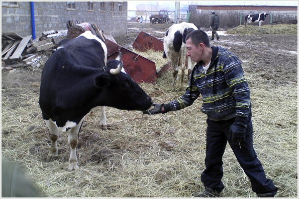 Трудников тепло встретили, напоили чаем, и к делу они приступили с полными силами и  рвением: кто-то пилил дрова, другие сразу кололи получившиеся заготовки, и так потихоньку сложилась целая гора пригодных для топки дров — две с половиной больших тележки. Трактор увозил дрова в коровник, где их аккуратно складывали для будущего обогрева животных. А коровы тем временем паслись на улице и на работающих смотрели с любопытством, даже с некоторым удивлением. Так за работой незаметно прошел день… Уже и пилы затупились − на дрова ведь пошли старые ненужные доски, кое-где с гвоздями.