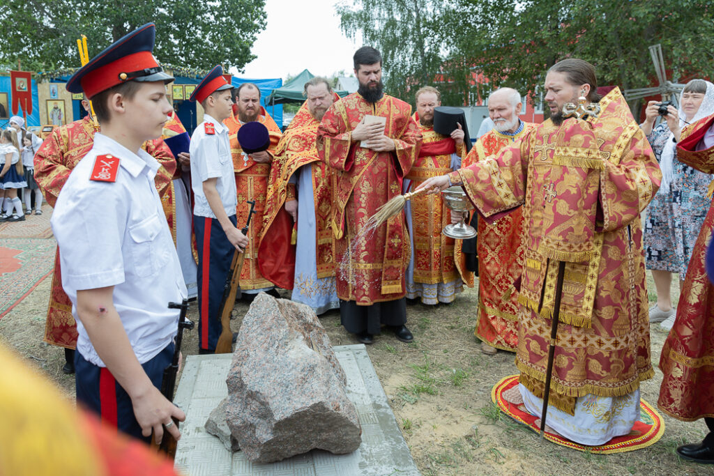 Торжество состоялось по завершении литургии на открытом воздухе, в которой приняли участие юные казаки-кадеты и их наставники, а также учащиеся и выпускники других образовательных учреждений, представители районной администрации, а также казачий атаман Николай Мартынчук.