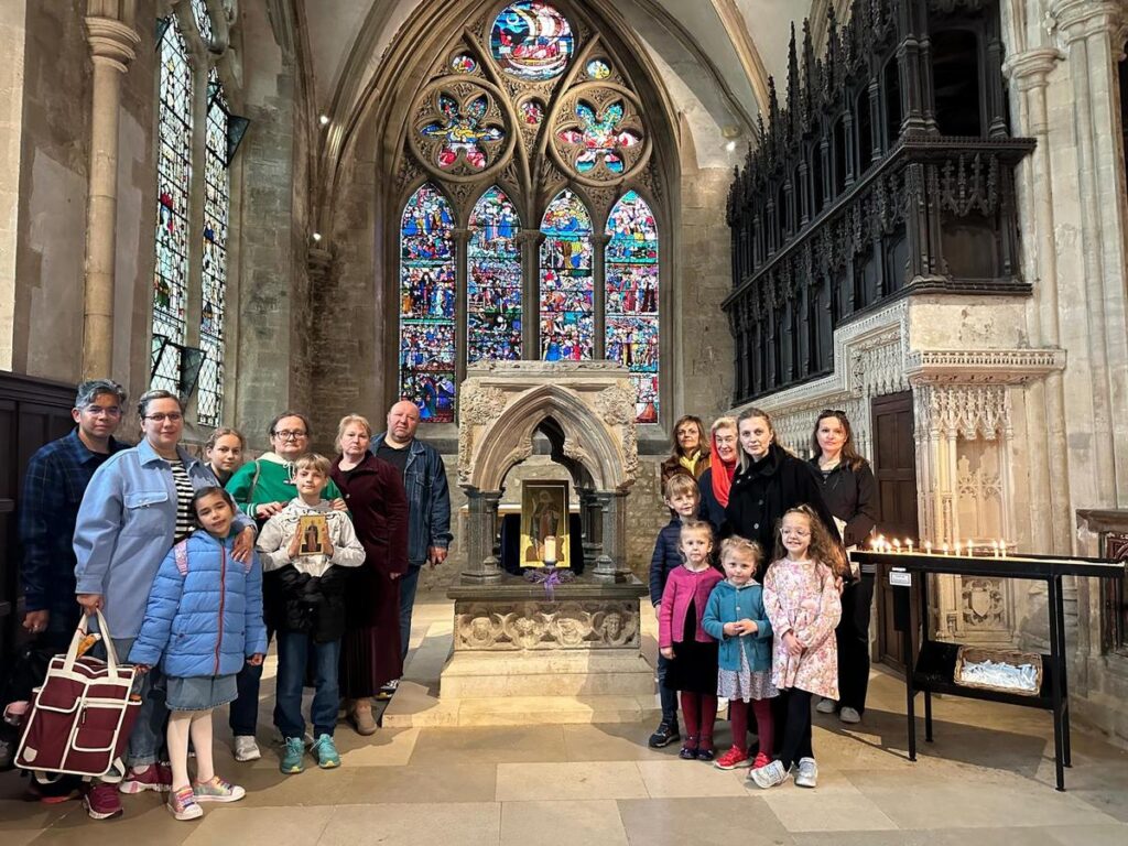 Приходы.ру 04.06.2024. 31 мая 2024 года по благословению епископа Сурожского Матфея группа учащихся, их родителей и учителей церковно-приходской школы при Успенском кафедральном соборе Лондона (Великобритания) совершила паломническую поездку к гробнице преподобной Фридесвиды Оксфордской.